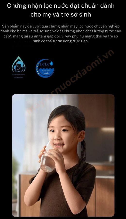 Đạt tiêu chuẩn nước uống cho mẹ và trẻ sơ sinh, được cấp bởi nhiều tổ chức uy tín như CCLC, ECEP.