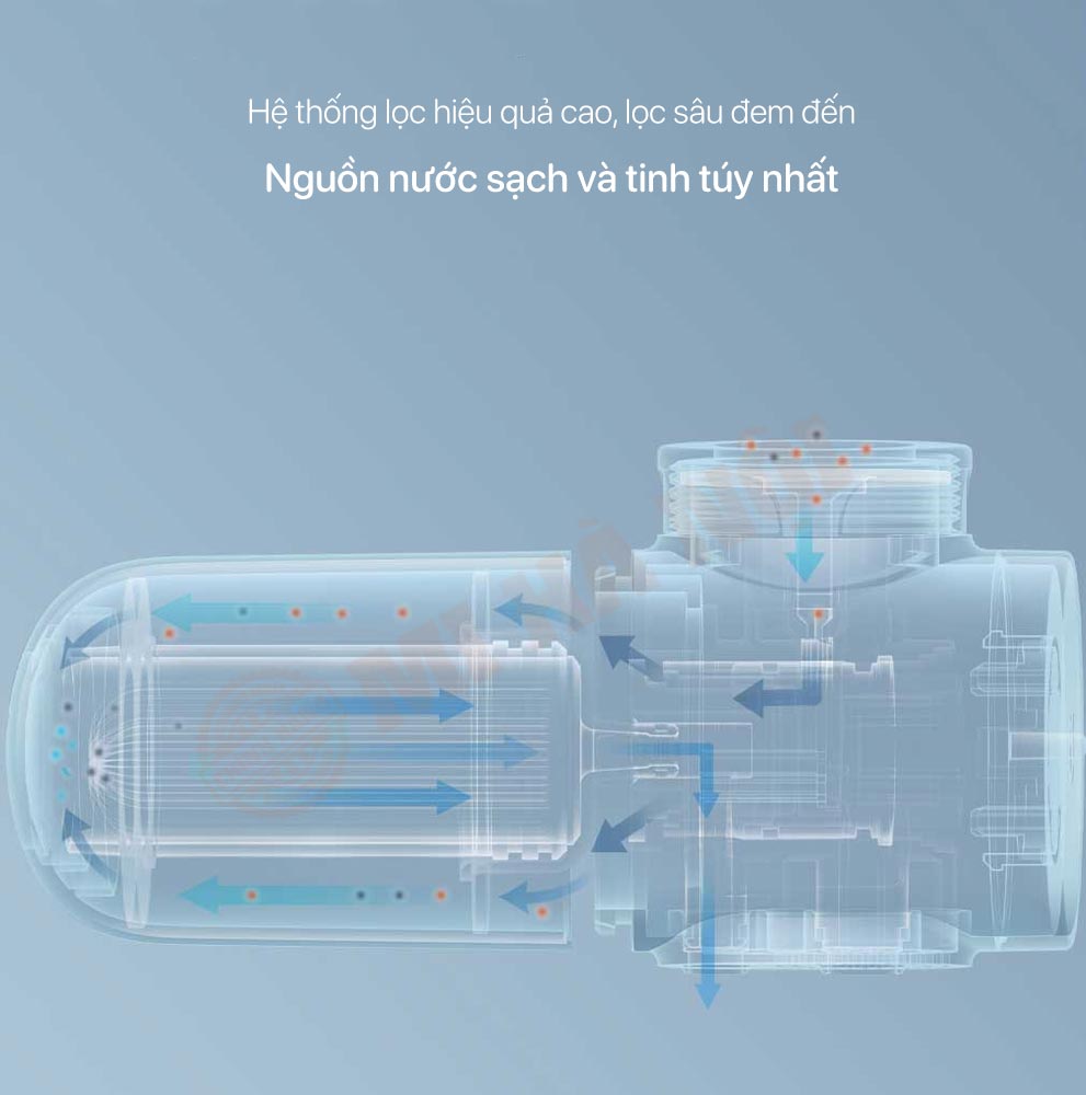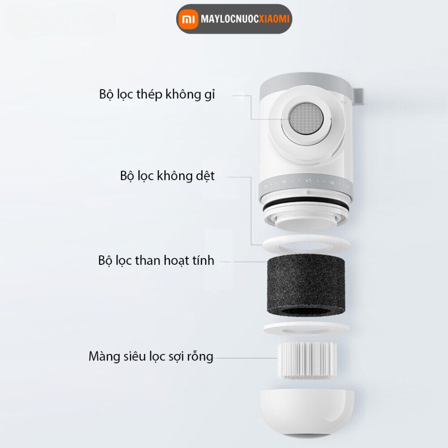Máy lọc nước tại vòi Mijia MUL11 sở hữu bộ lọc 4 lớp hiện đại, đảm bảo loại bỏ hầu hết các chất gây ô nhiễm như rỉ sét, phù sa, clo dư, và các hạt nhỏ lơ lửng trong nước.