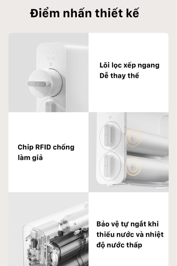 Chất lượng nước đầu ra từ Xiaomi N1800G đã được kiểm nghiệm nghiêm ngặt, đạt tiêu chuẩn nước an toàn cao nhất dành cho bà mẹ và trẻ sơ sinh, loại bỏ hoàn toàn các chất độc hại như Bisphenol A. Điều này mang lại sự an tâm tuyệt đối cho mọi thành viên trong gia đình, đặc biệt là những đối tượng nhạy cảm. Hơn nữa, lõi lọc RO có tuổi thọ sử dụng lên đến 5 năm, giúp bạn tiết kiệm đáng kể chi phí thay thế và công sức bảo trì.