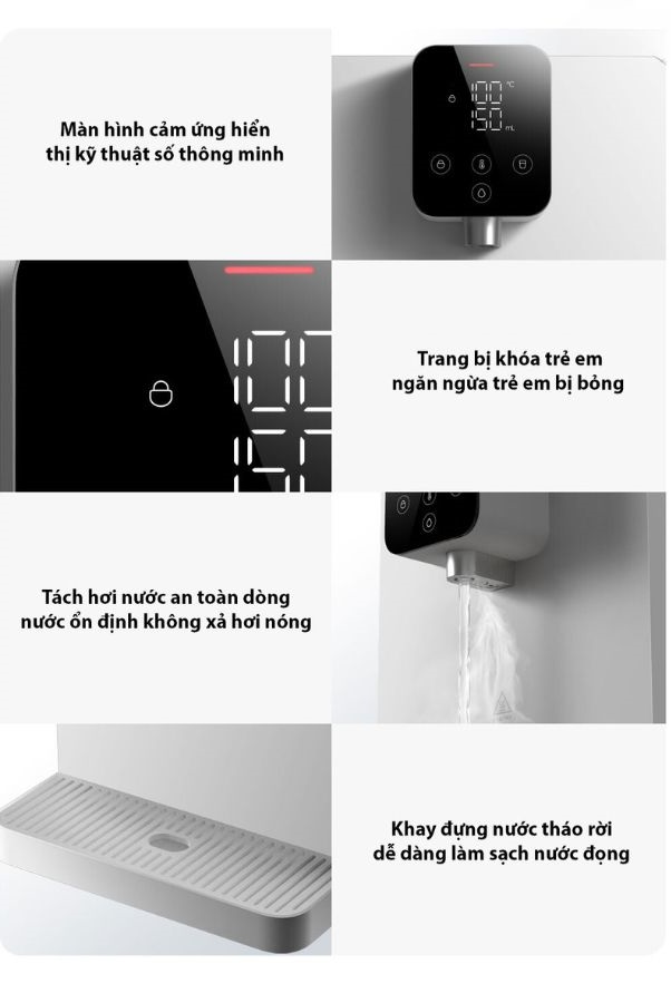 Màn hình cảm ứng kỹ thuật số: Hiển thị các thông tin nhiệt độ và lượng nước một cách trực quan, dễ thao tác.